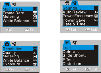 Press the MENU Button to enter available settings for the Video Recording mode.