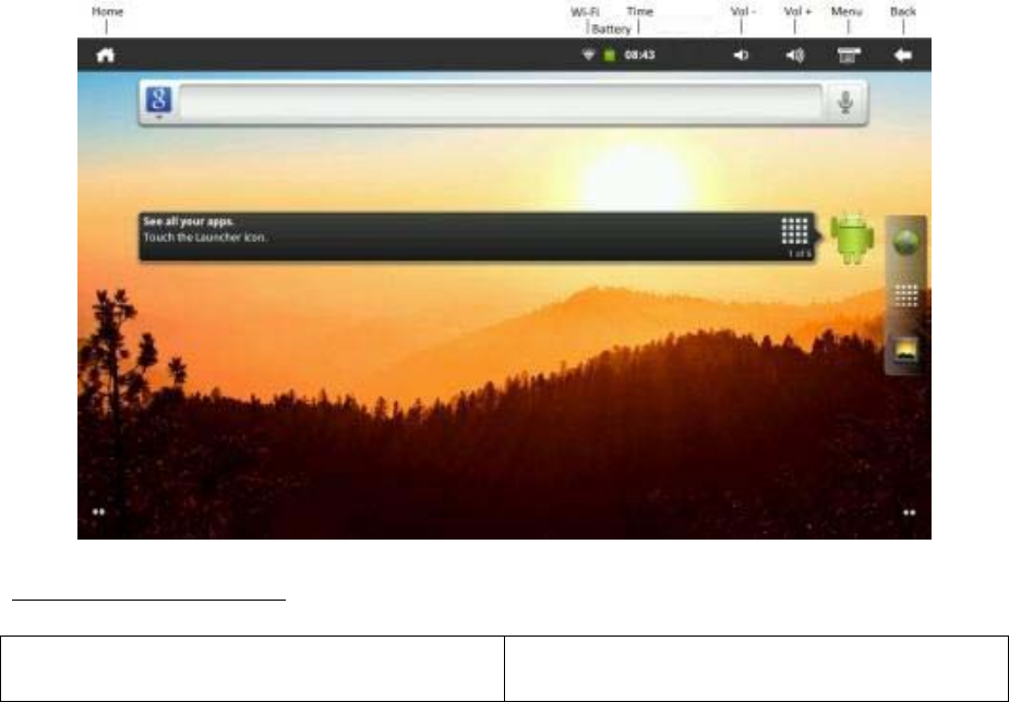 Afterthestart‐upprocedureiscomplete,thetabletwillshowtheHomescreen(asbelow).