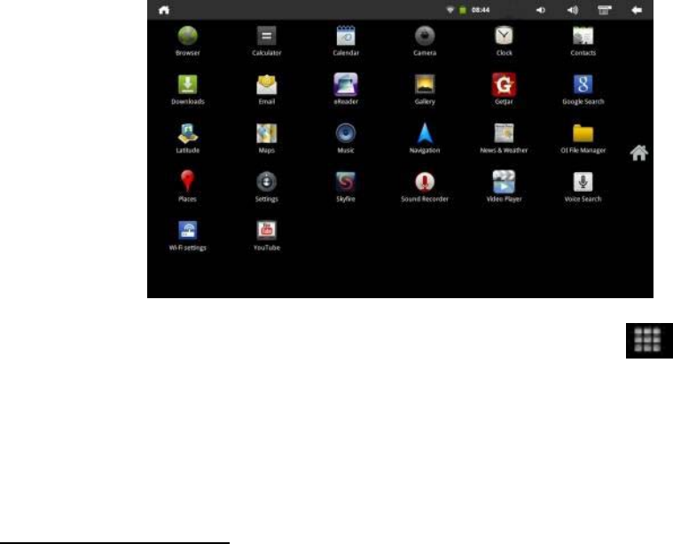 TheApplicationscreengivesaccesstoallpre‐loadedanddownloadedappsonthedevice,