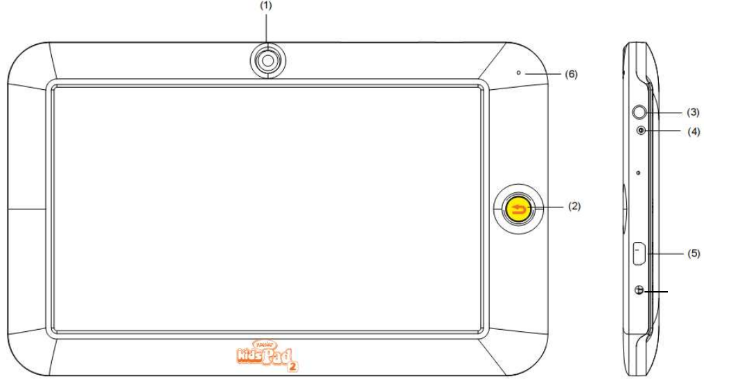 (1) Camera (2) Return button (3) MIC (4) earphone jack