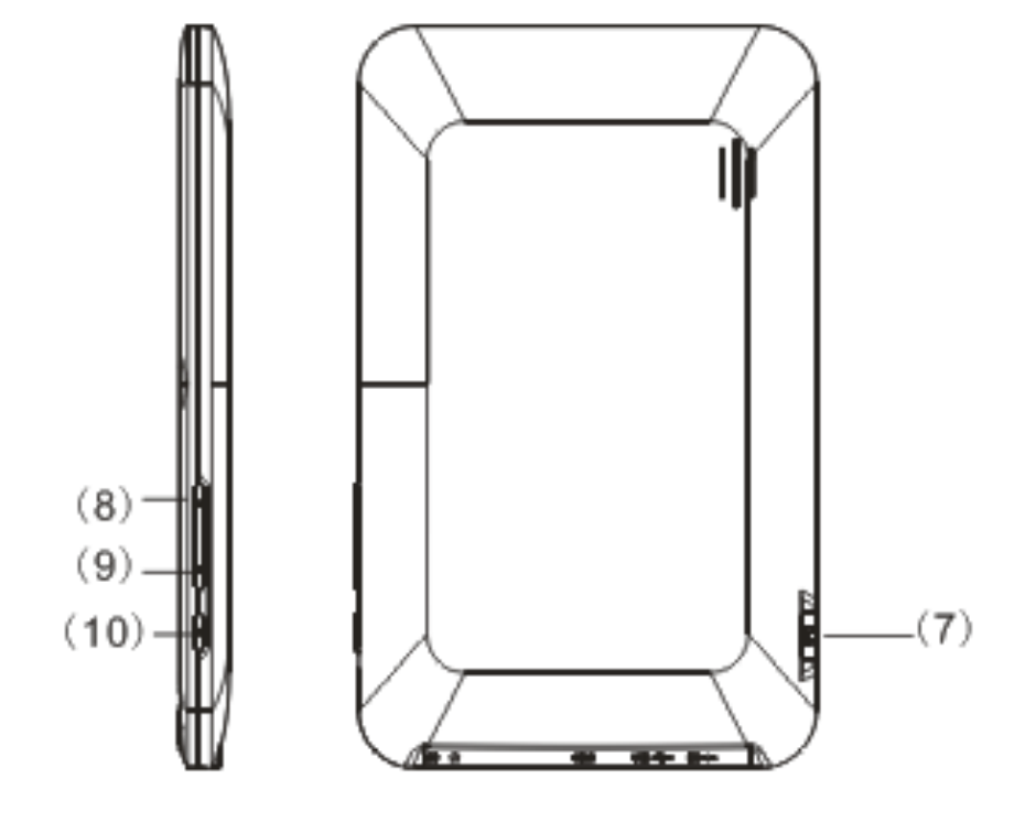 (5) USB (6) Charging indicator light (7) Micro SD card slot