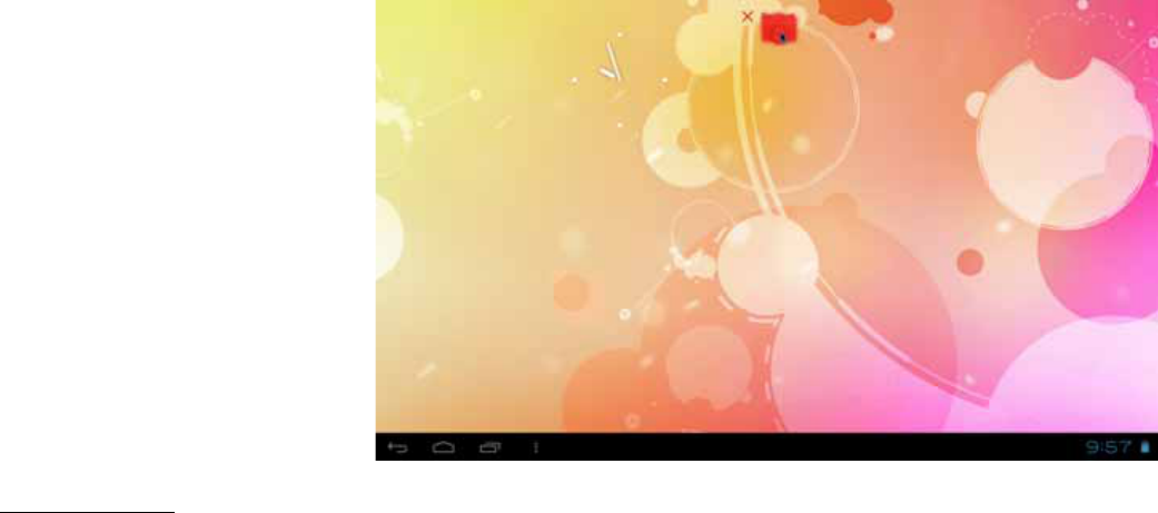 To delete an app or widget from the desktop; press, hold and drag the icon to “x Remove” which appears at