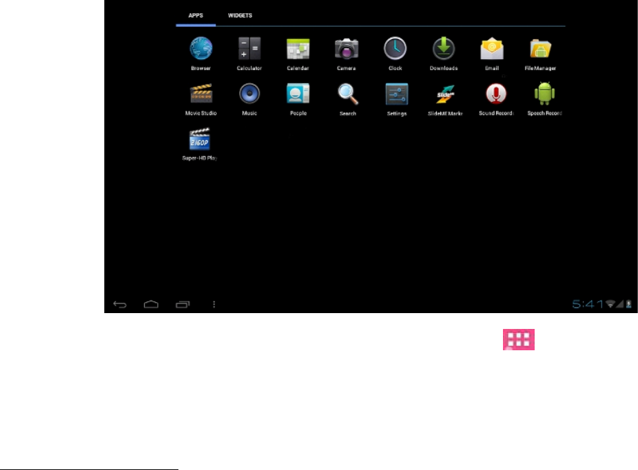 The Application drawer gives access to all pre-loaded and downloaded apps and widgets on the device,