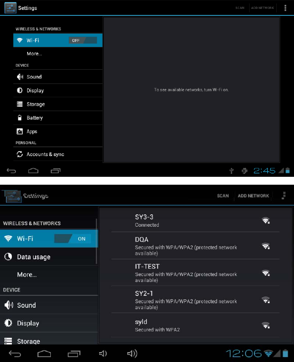 1)Wi‐Fi :startWIFIfunction,andthedevicewillautomaticallysearchforavailableWIFI