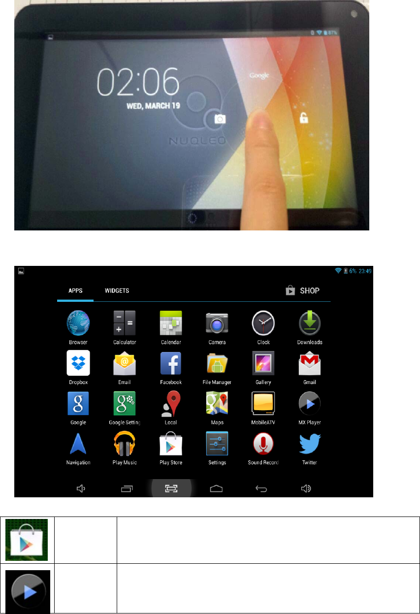 Drag: click a certain icon in the screen and hold, then move the finger, the icon will move accordingly.