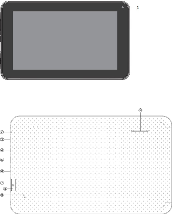 (1) Camera (2) MIC (3) Power (4) Earphone jack