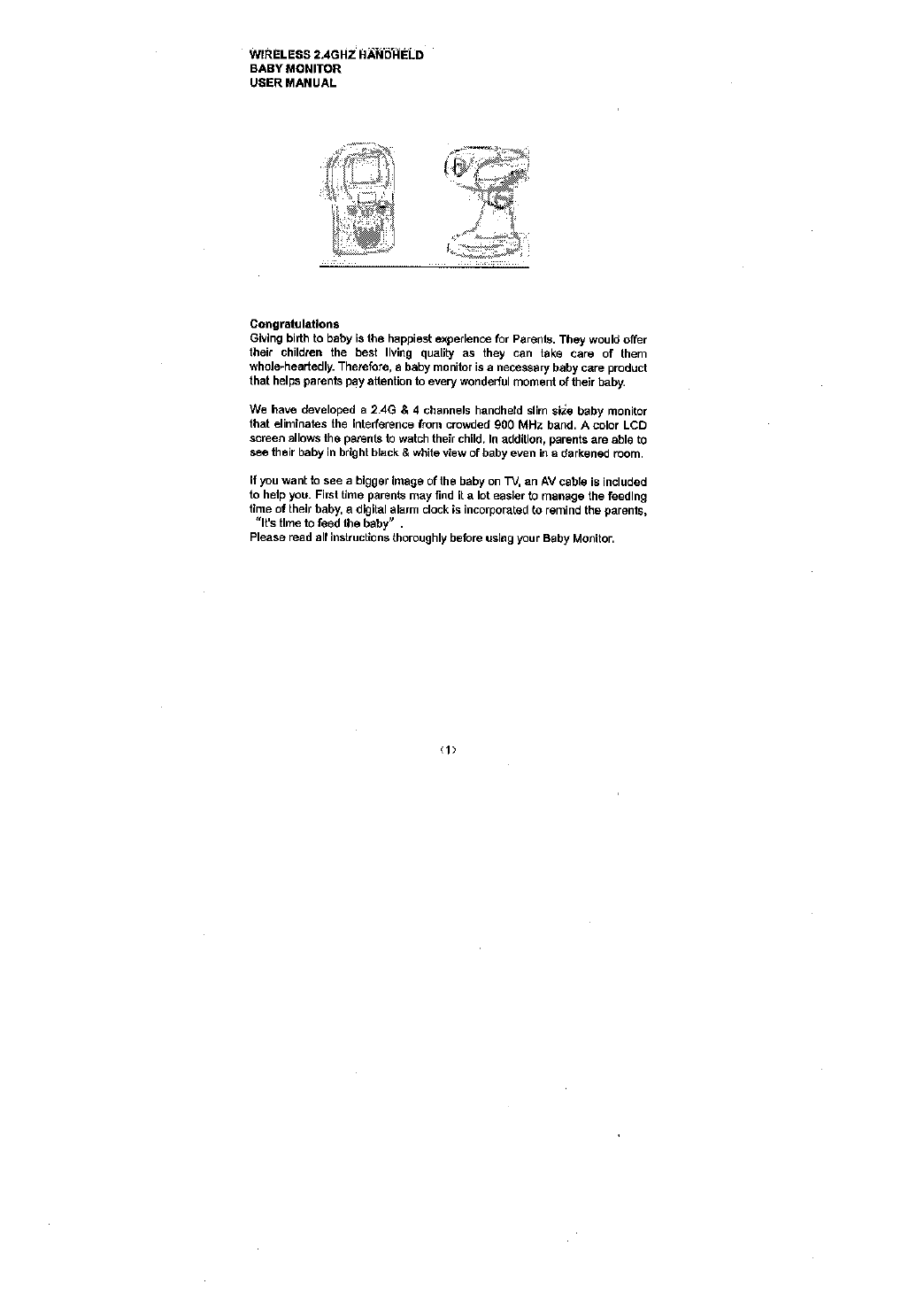 SHUOYING SY172TX 2.4 GHz WIRELESS BABY MONITOR User Manual USERS MANUAL