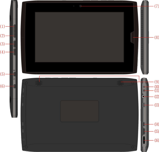 ⑸Screen-reversing switch (G-sensor lock) ⑹POWER key⑺Camera⑻Return key