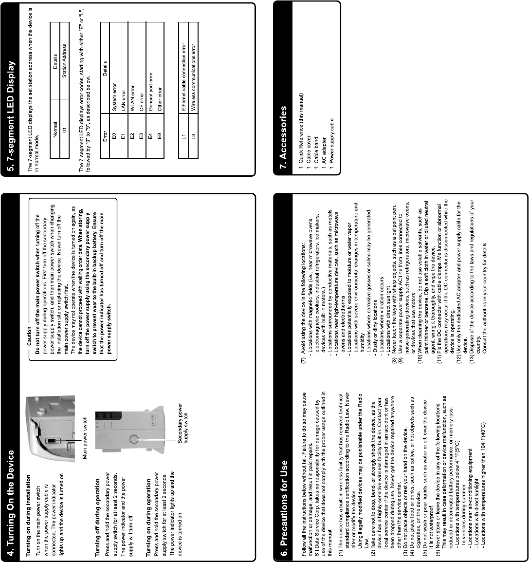 SII Data Service SA-1320 Order Entry System Wireless Station User Manual