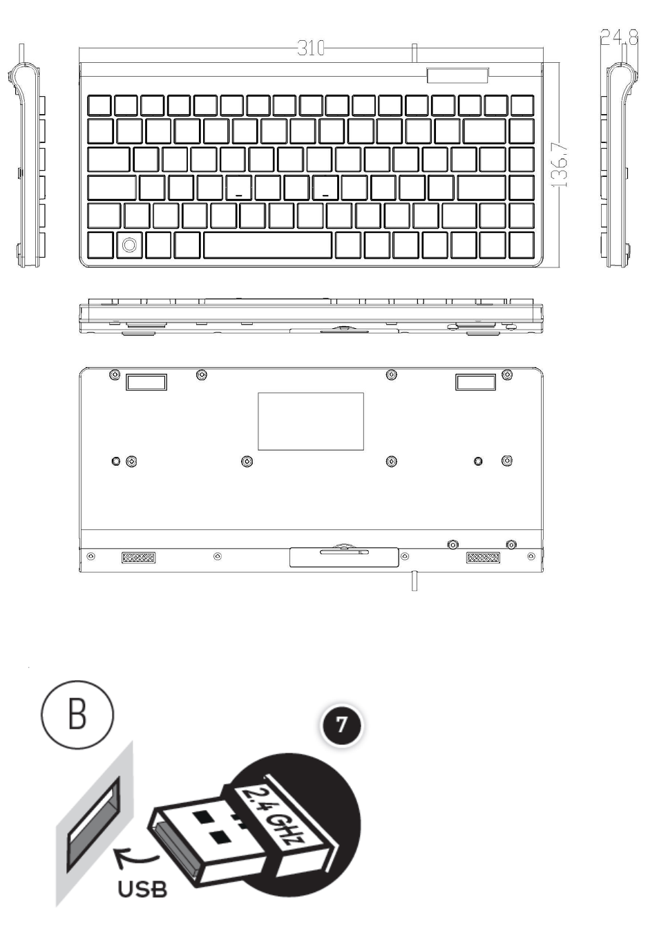 310(L)×136.7(W)×24.8(H)mm