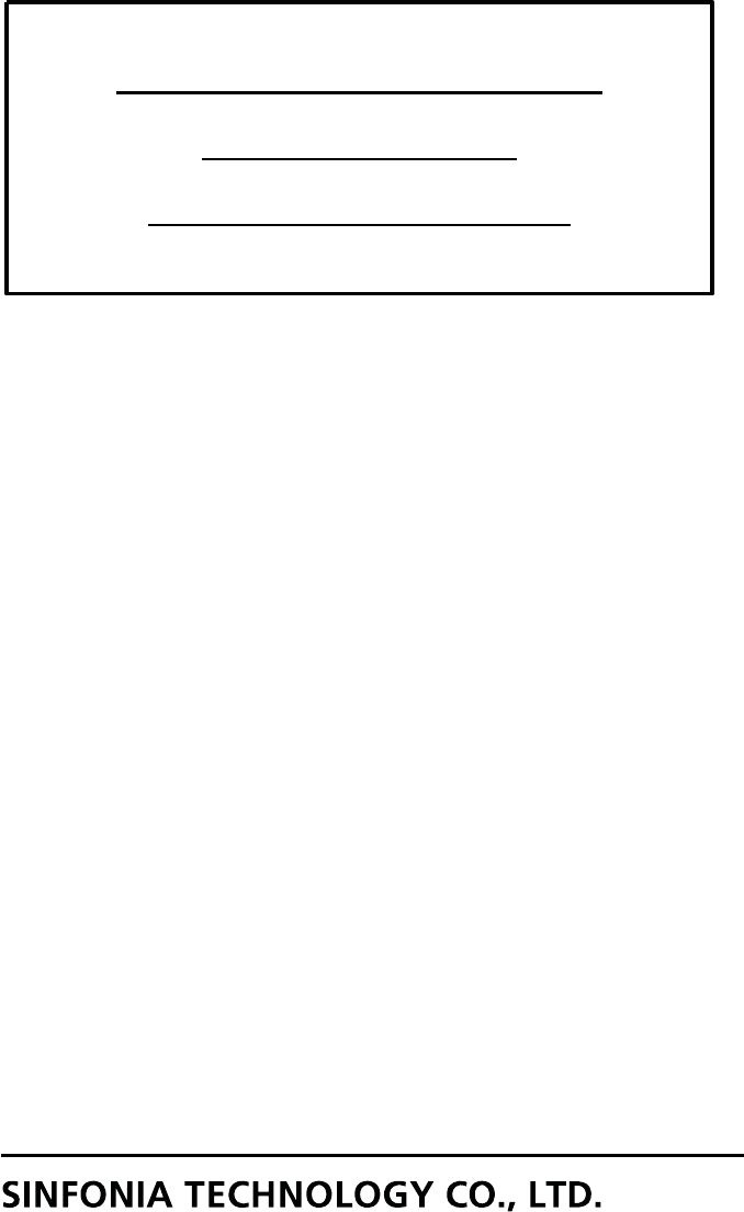 SINFONIA TECHNOLOGY CO., LTD. Digital Photo Printer User s Manual