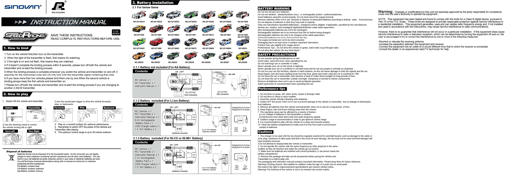 SINOVAN CULTURE SINOVAN03 RC CAR User Manual