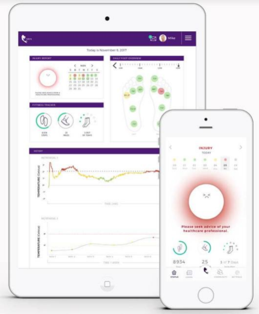 The Siren sock is used to track foot temperature on the bottom of your feet