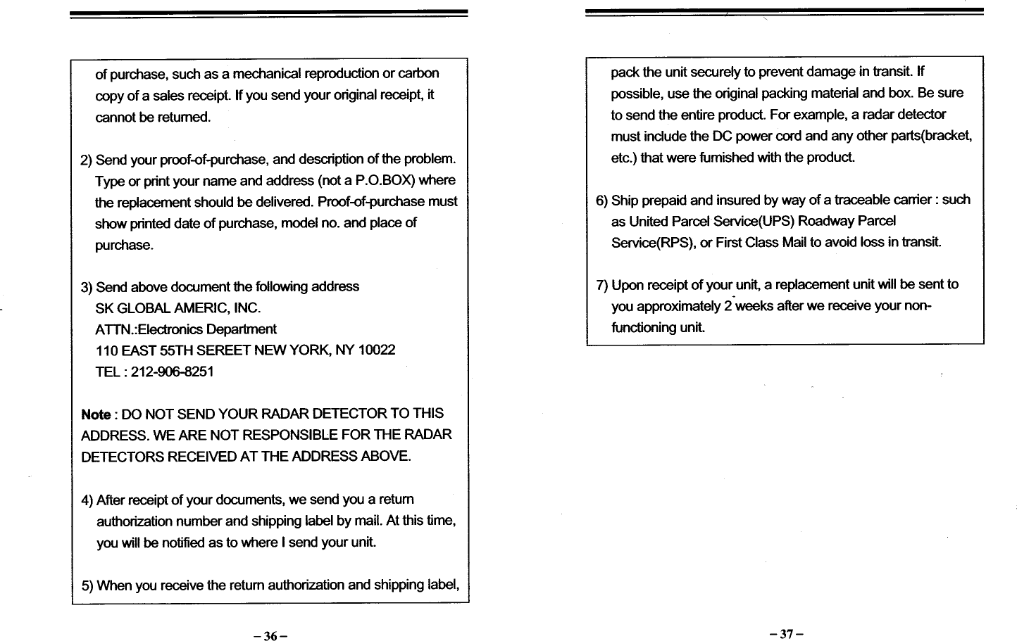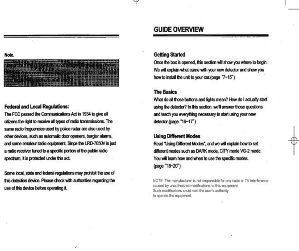 SK Global Radar Detector with Compass users manual