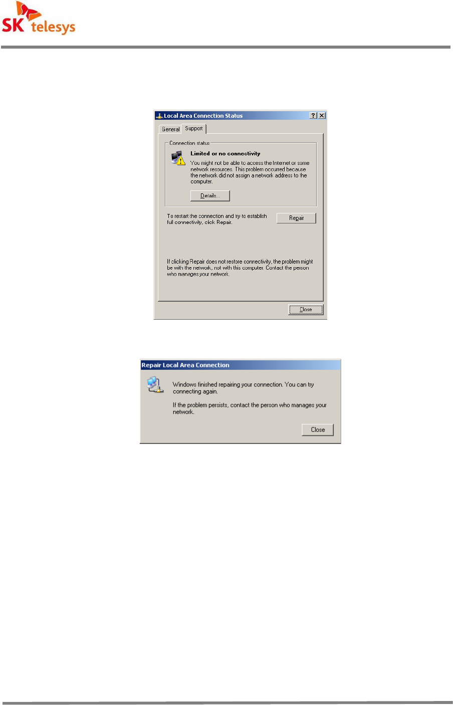 connectors, any modifications made without SK Telesys Corp. authorization, will void all