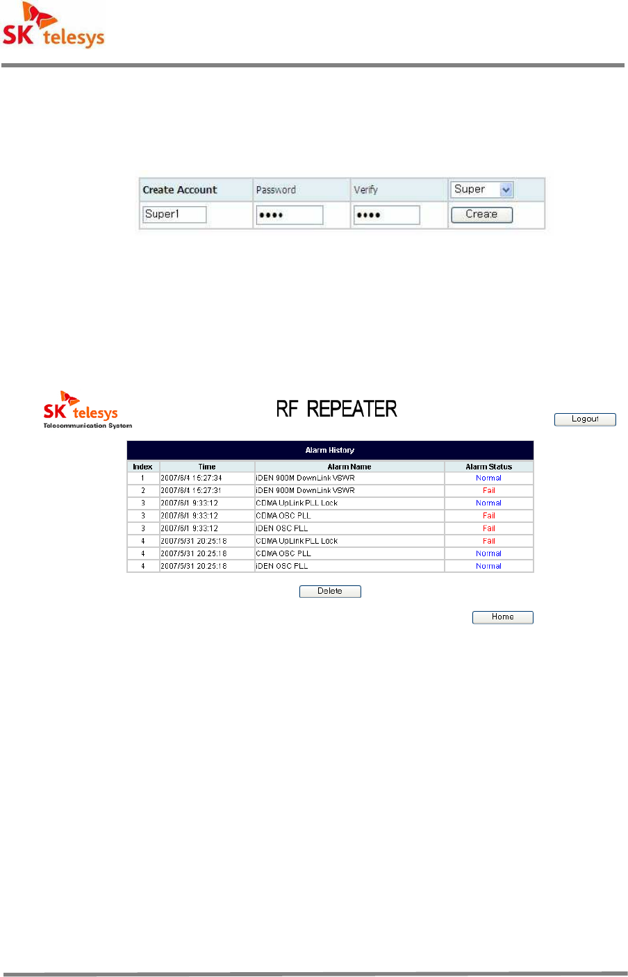 labels exhibiting tampering, physically abused equipment. SK Telesys Corp. Proprietary