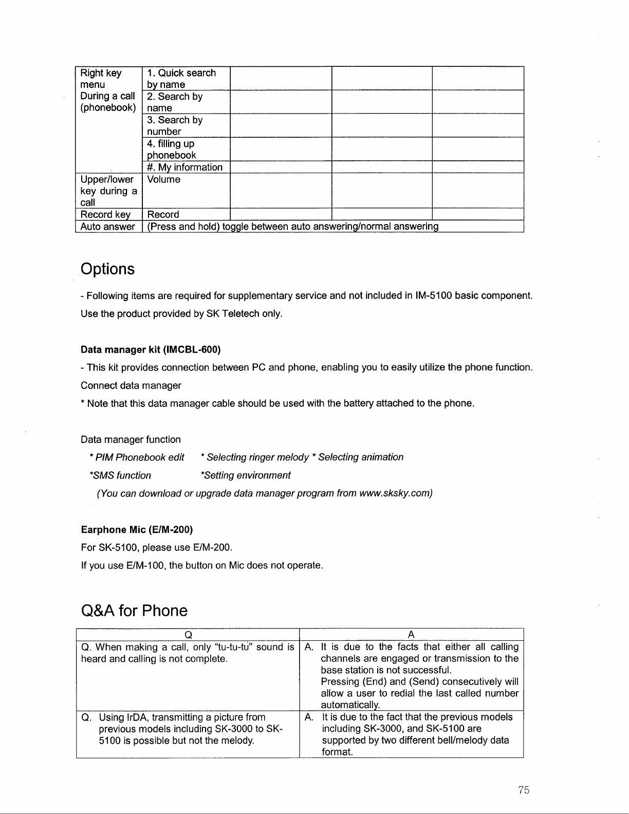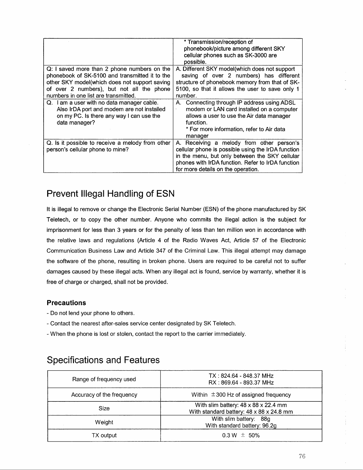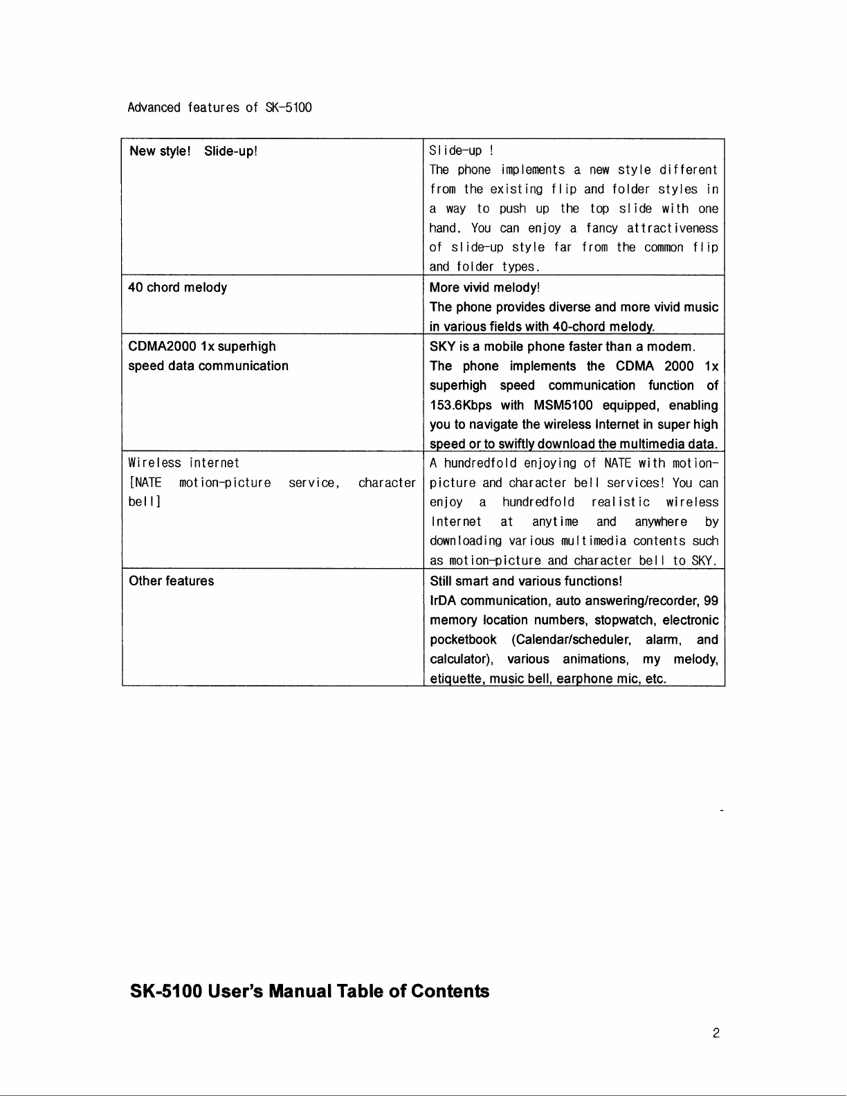 SK Teletech SK-5100 Single-Mode Cellular CDMA Phone User Manual