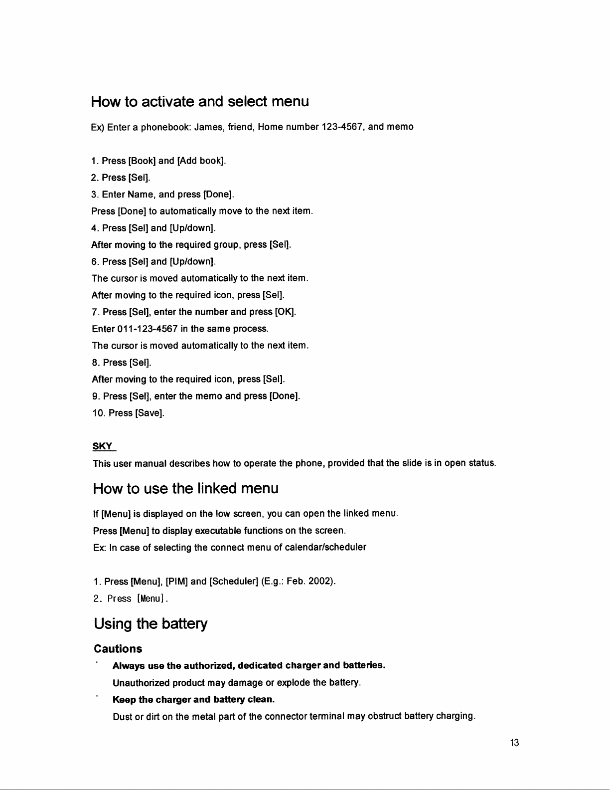 SK Teletech Company Limited Single-Mode Cellular CDMA Phone Users Manual