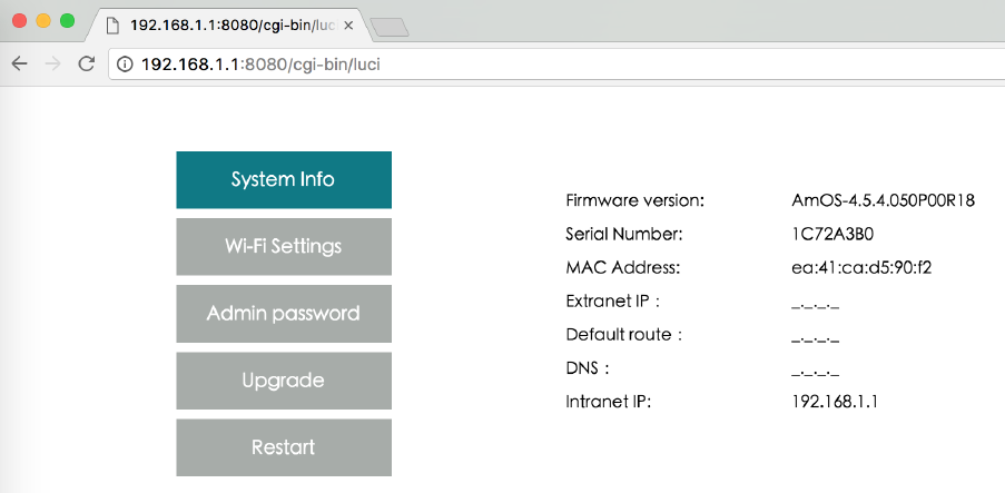 In to WebUI : 192.168.1.1:8080