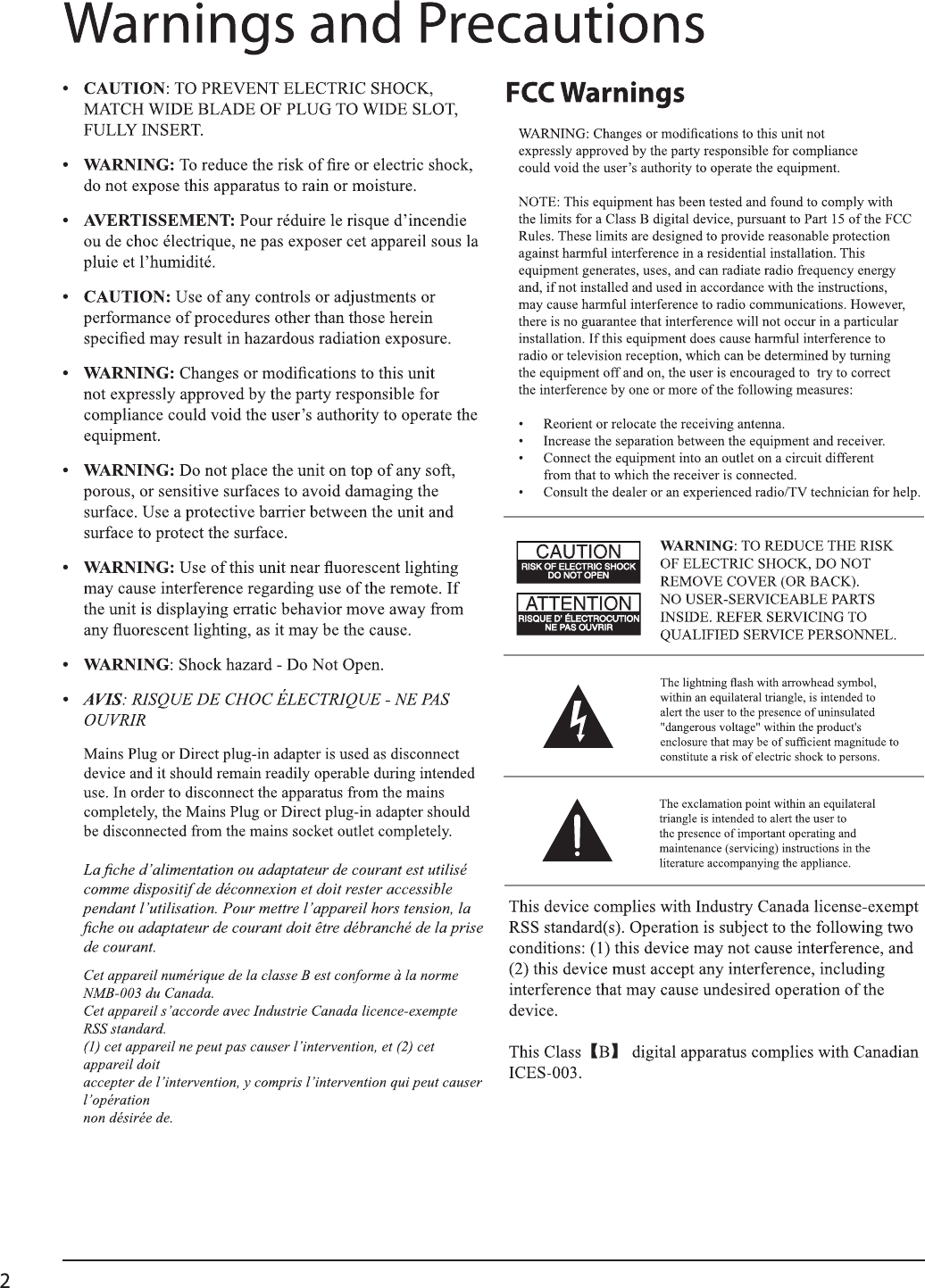 4•  Handsfree speakerphone•  Echo cancellation•  Supports Bluetooth v2.1•  Supports Enhanced Data Rate (EDR)•  2 USB ports (5V500mA, 5V/2.1A)•  3.5mm audio input•  Wireless range: 33 feet•  LED indicator on speakers for power and pairing•  Digital volume control•  DC power input: requires an AC/DC power adapter (included)•  Micro-USB to USB cable•  Mini-USB to USB cable•  AC/DC power adapter•  Warranty•  User’s guideBluetooth Speaker and Charging StationFeatures Included