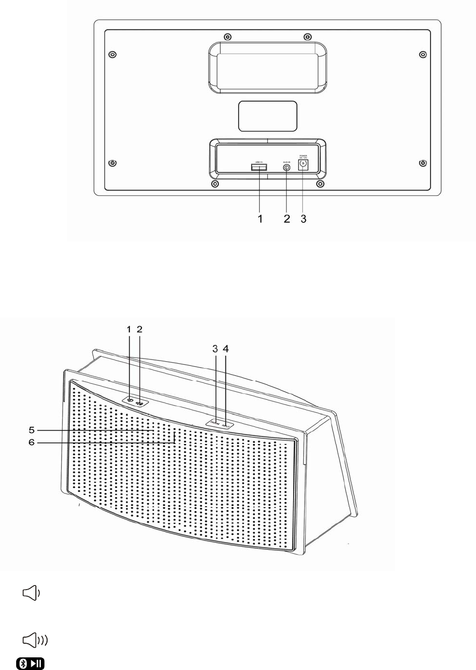 2. AUX IN: External sound source input jack (3.5mm)