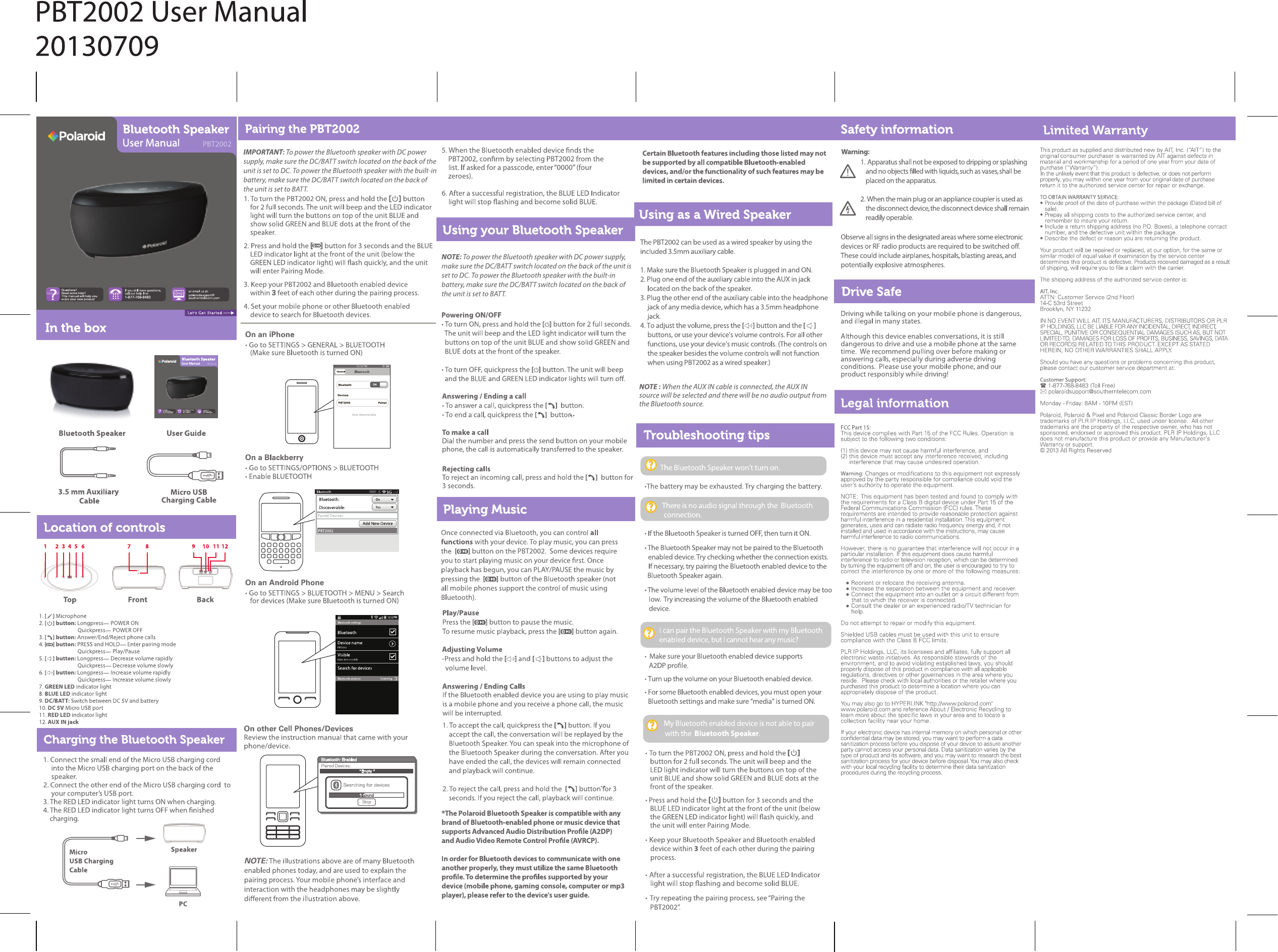 Shenzhen SKY DRAGON Audio-video Technology Co.LTD Bluetooth Speaker PBT2002 usermanual 07 08