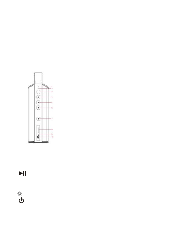 1. 。: Bluetooth/ TF∕SD Function and charging indicator lamp