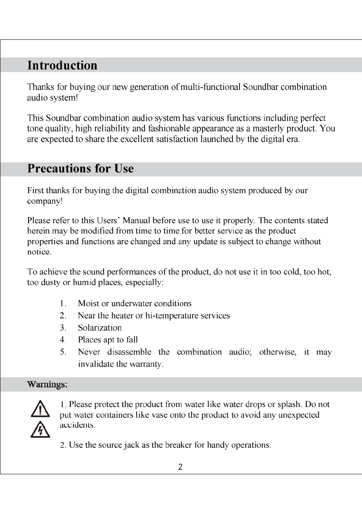 SKY DRAGON Audio video Technology SR206BSR206C Sound Bar User Manual