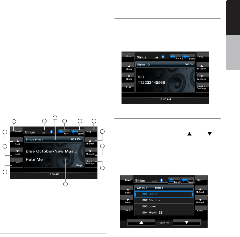 For detailed information,refer to the instruction manual of the Sirius Satellite Radio