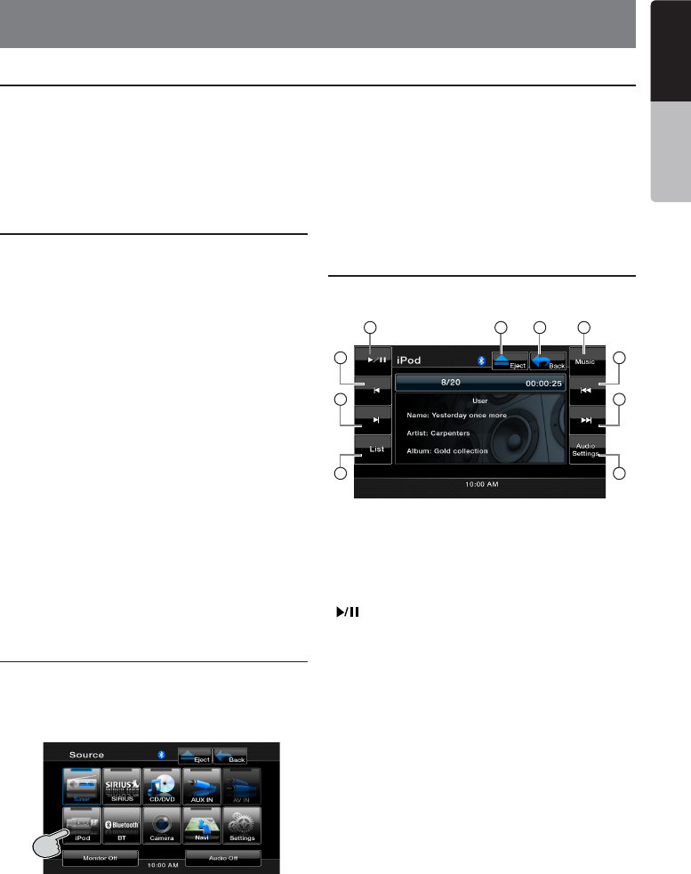 The iPod/iPhone device can be connected to dedicated iPod/iPhone connection on the