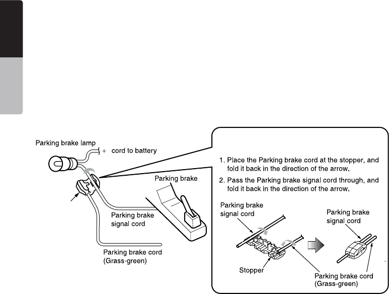 Connecting the parking brake cord to lamp ground allows you to watch iPod/iPhone