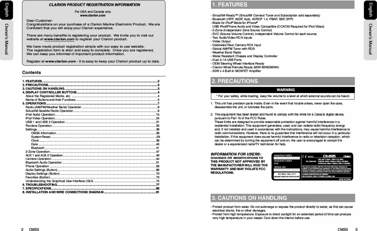 SKYPINE ELECTRONICS CMS5 Marine Audio Systems User Manual