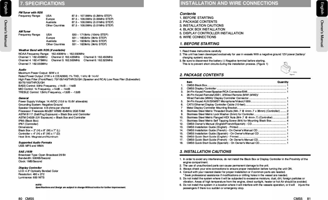 SKYPINE ELECTRONICS CMS5 Marine Audio Systems User Manual