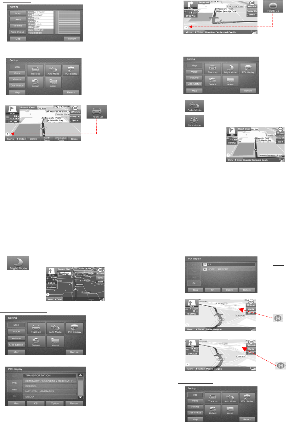 • Select to set map into Track Up or