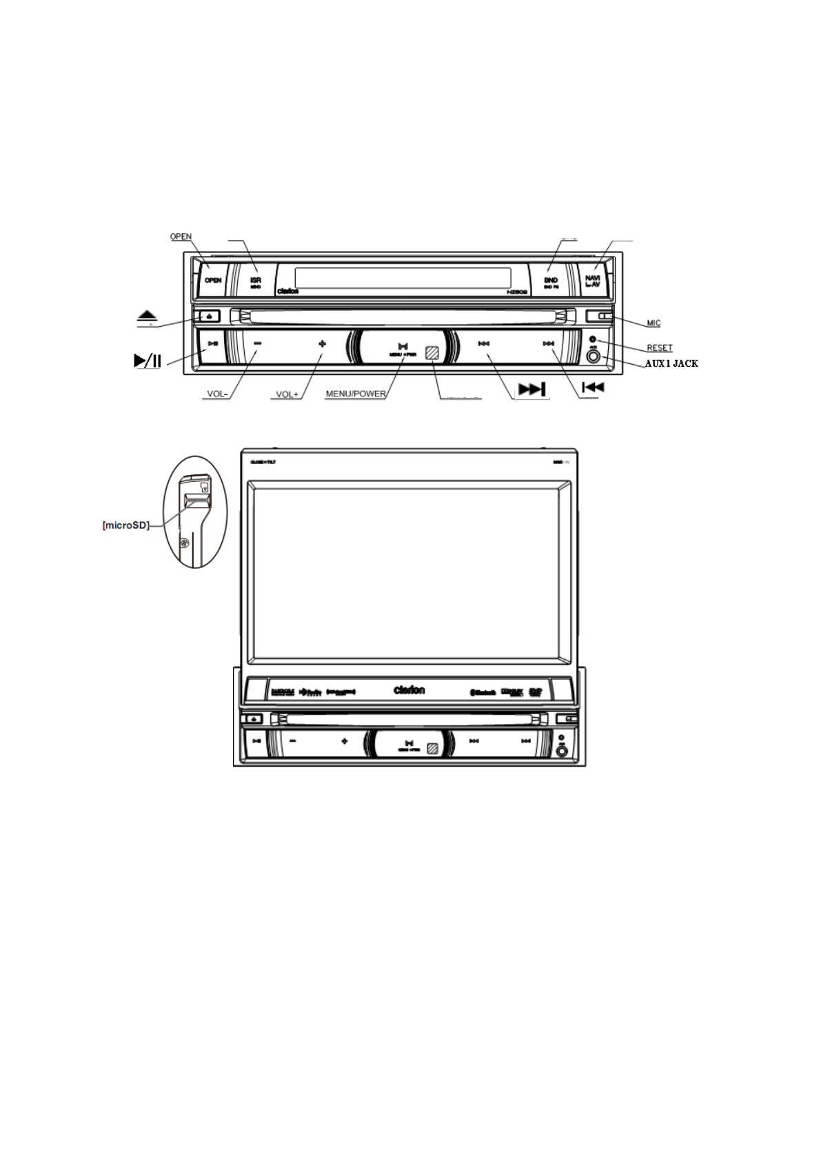 • Press and hold to enter manual seek status in Tuner mode, then press briefly to seek