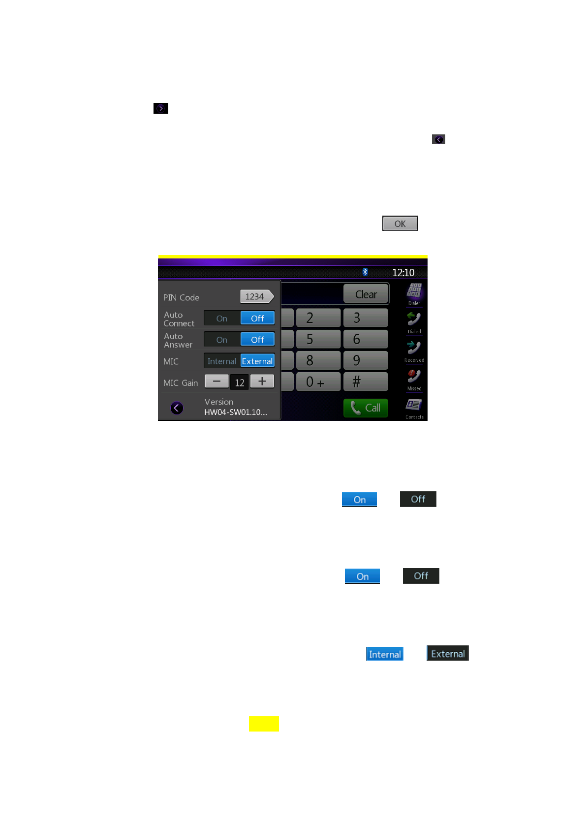 •Internal microphone for use during Bluetooth phone calls. Sensitivity can be adjusted