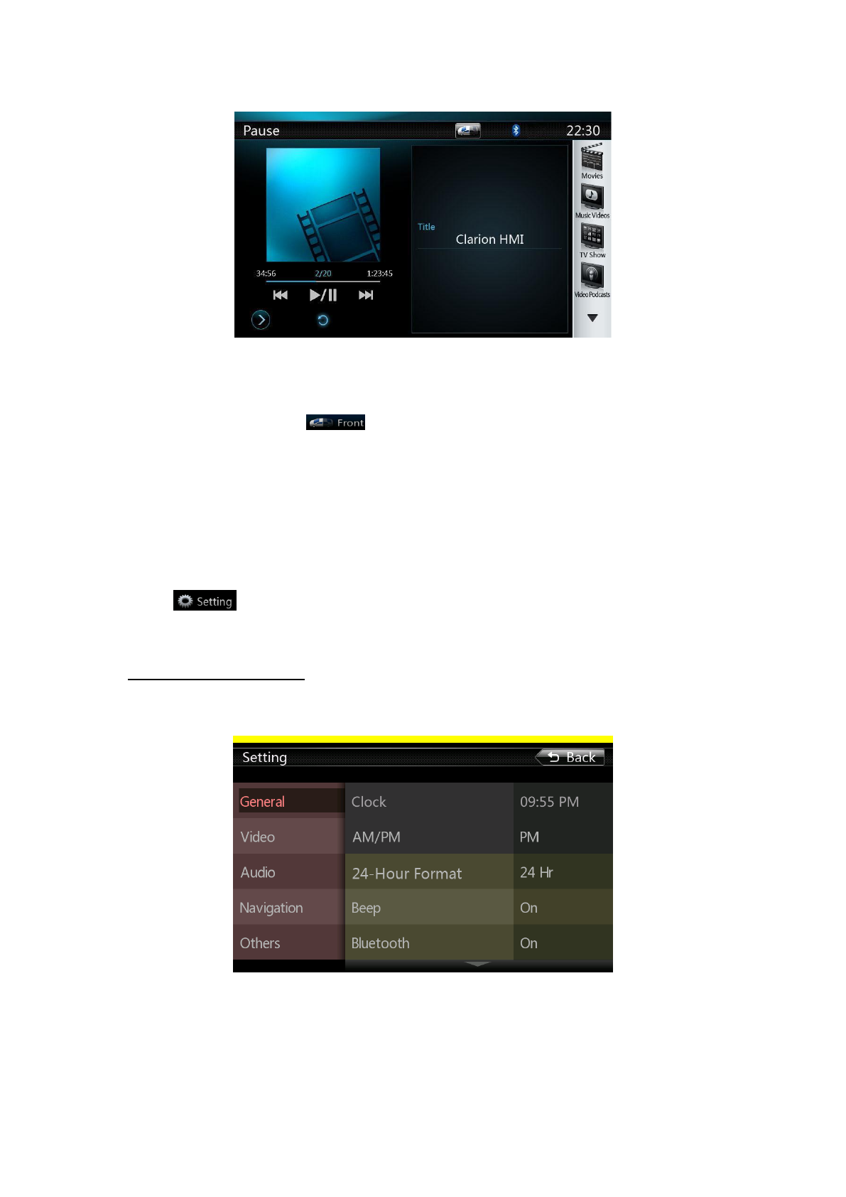Press the Menu button can display the iPod Video Rear Source mode screen.