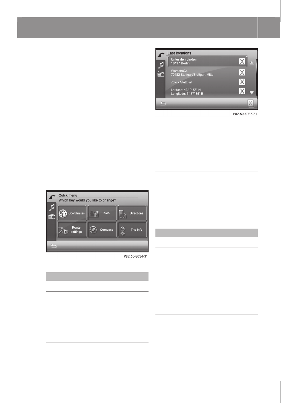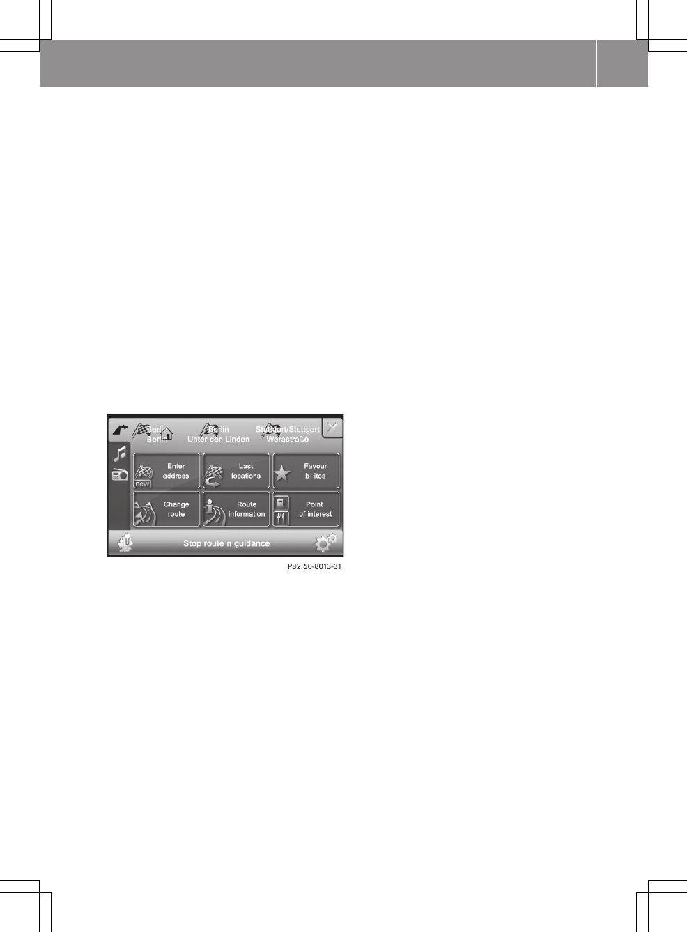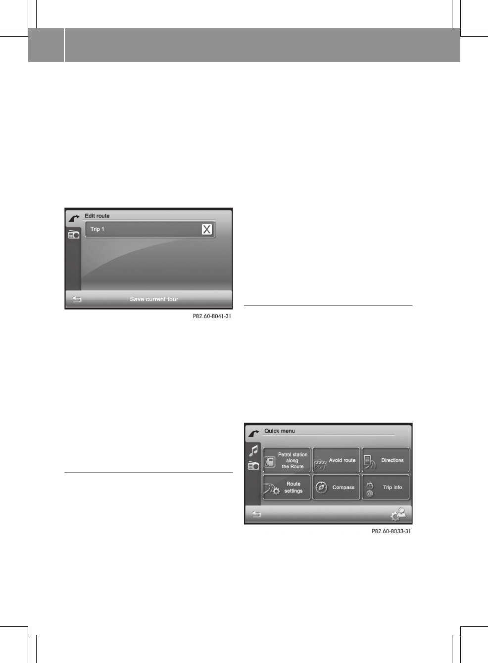 "Editing a route" menu (Y page 43).