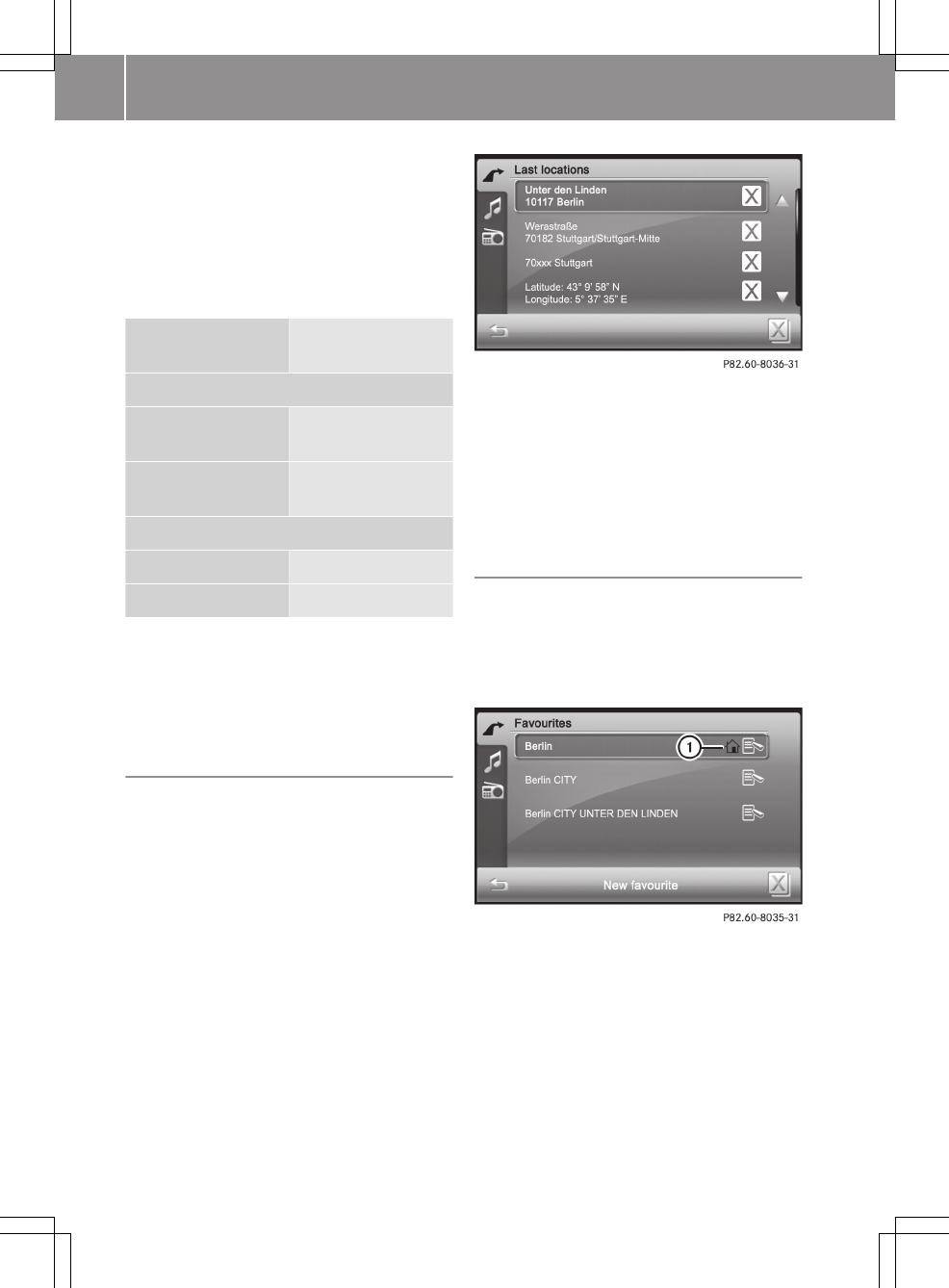 Favourites (destination memory)