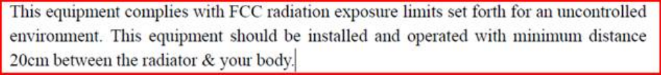This equipment complies with FCC RF radiation exposure limits set forth for an uncontrolled environment.