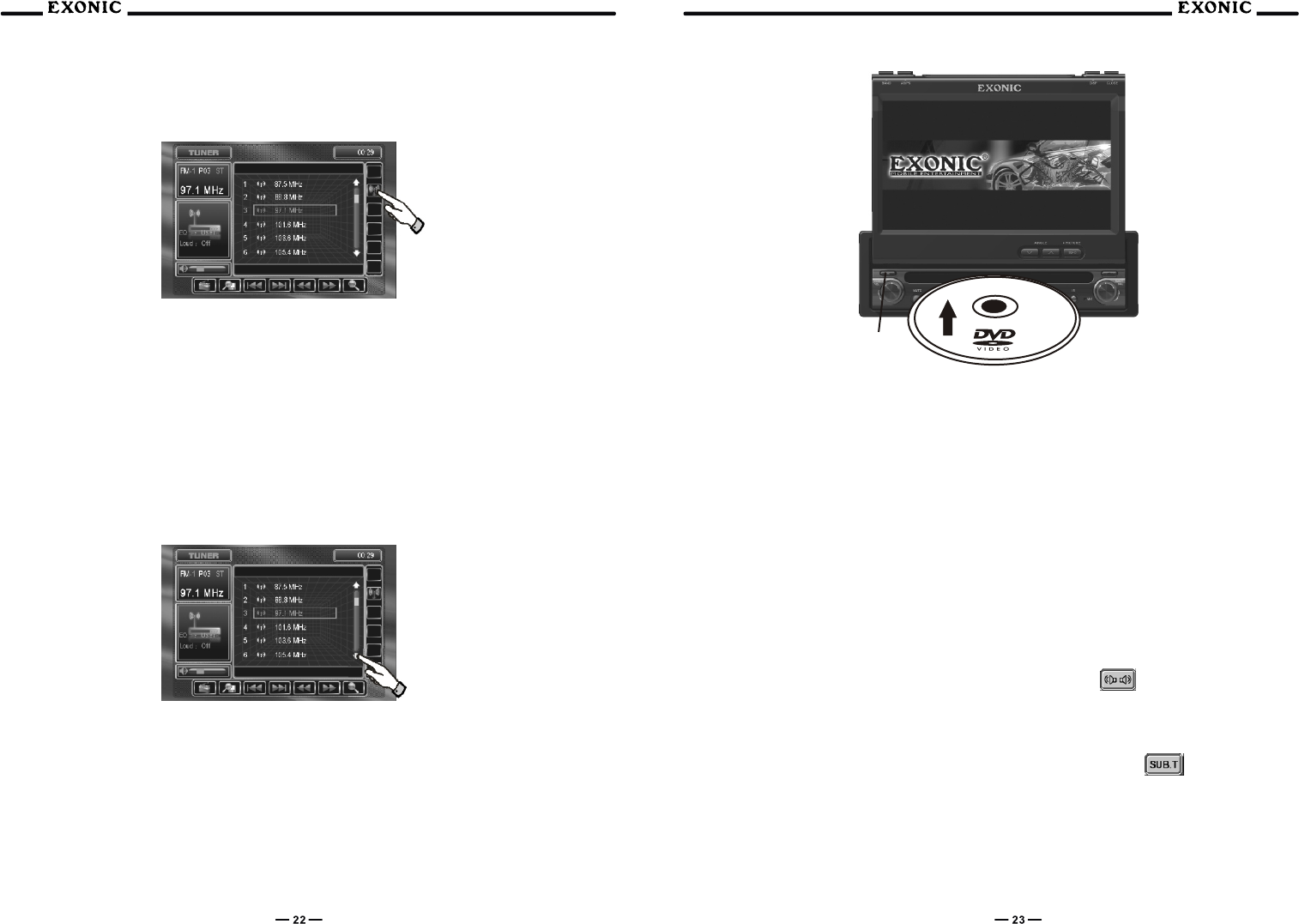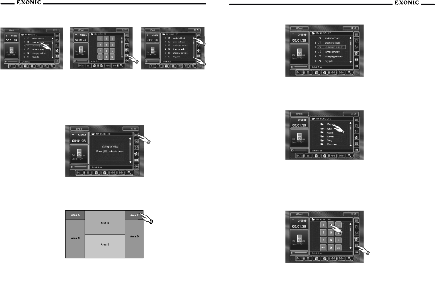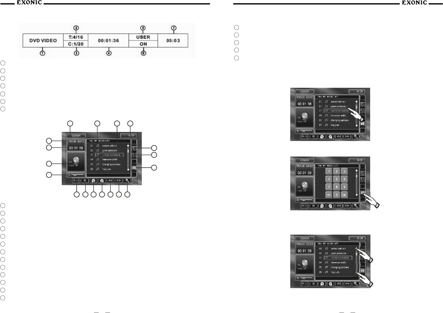 8 Touch to SCAN CD tracks for 5 sec each track, touch again to deactivate