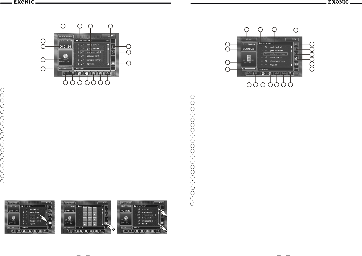 14 Touch to PLAY / PAUSE disc playback.