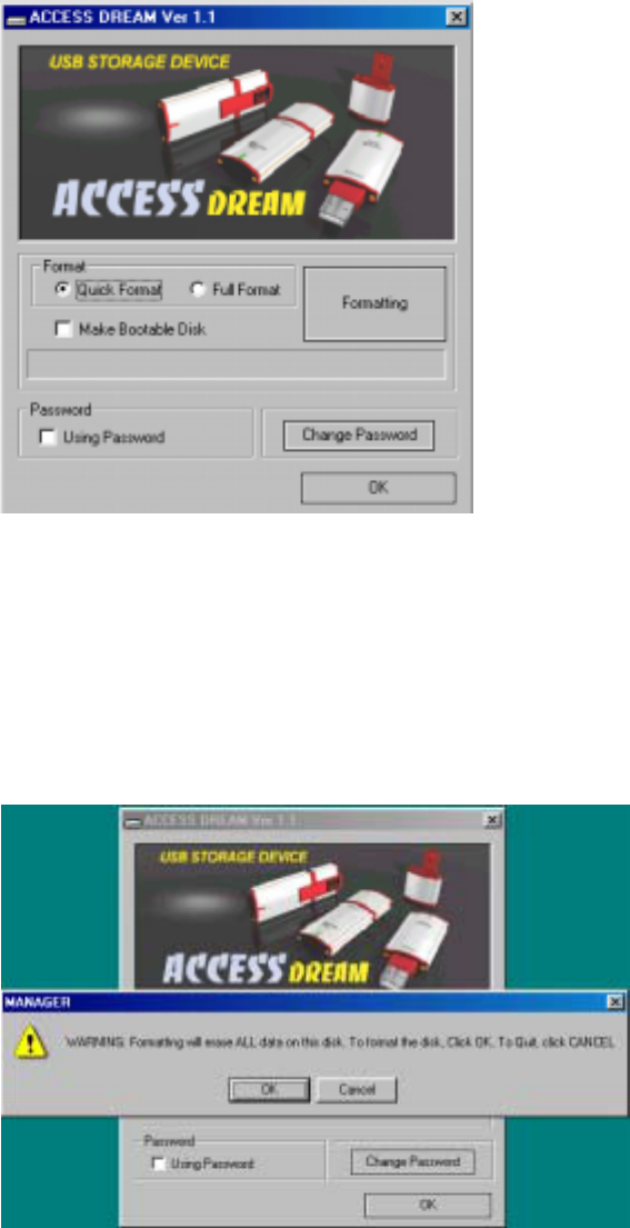 Bootingafterselecting‘USBZIP’fromBootDevicefollowedbyformatting.