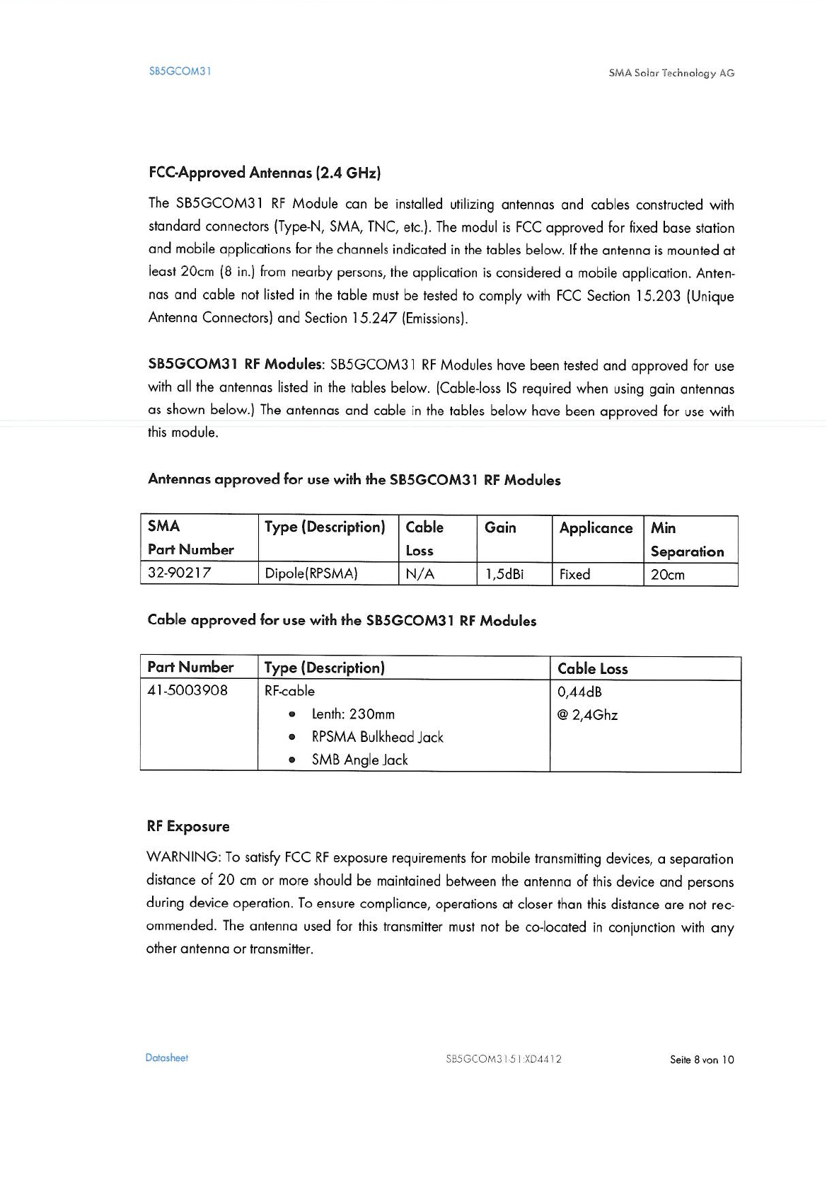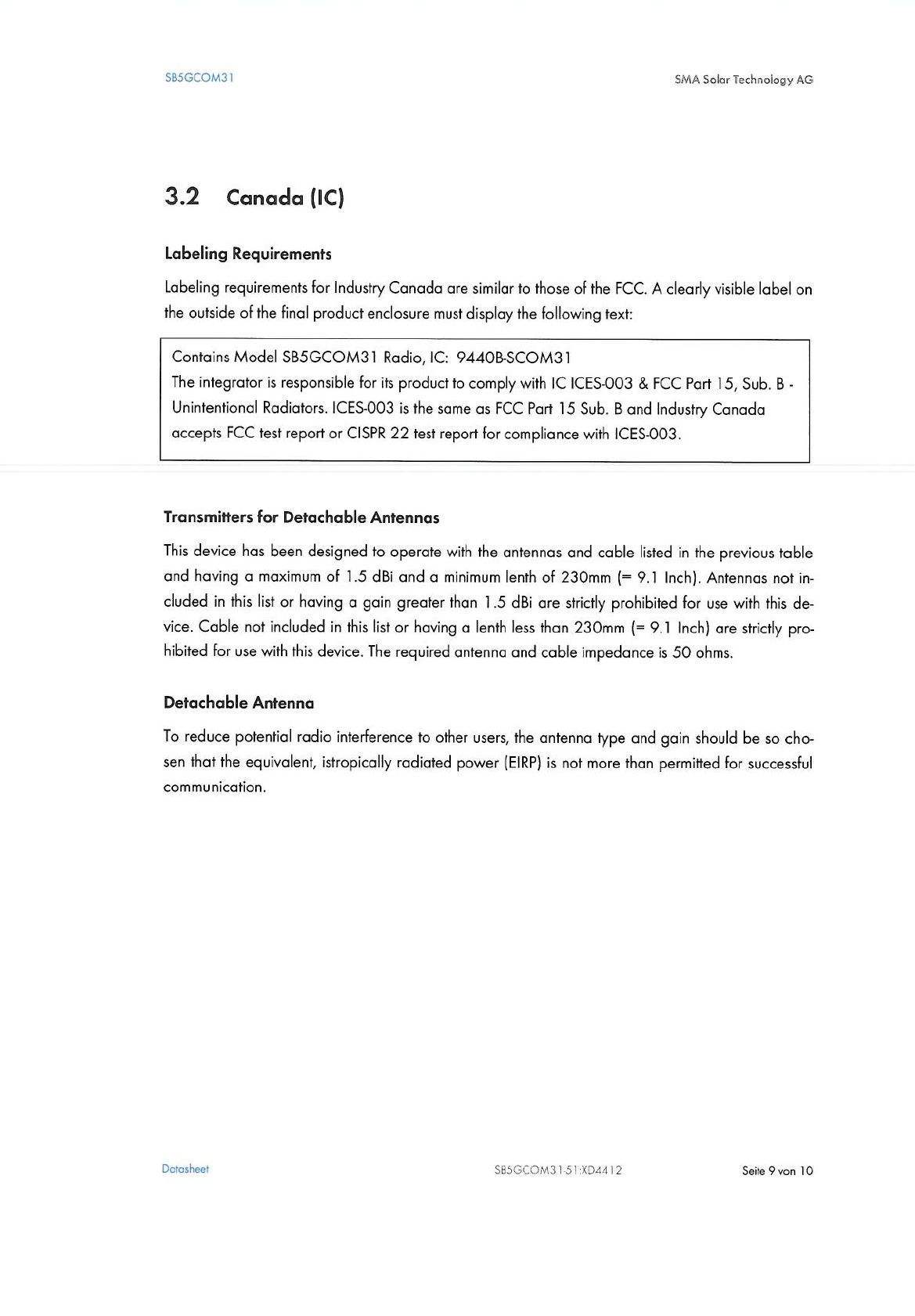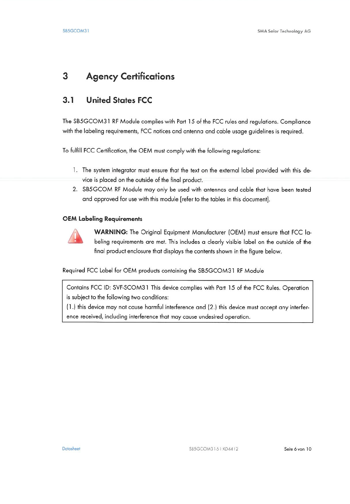 SMA Solar Technology SCOM31 Subassembly for inverter User Manual InstallationInstructions