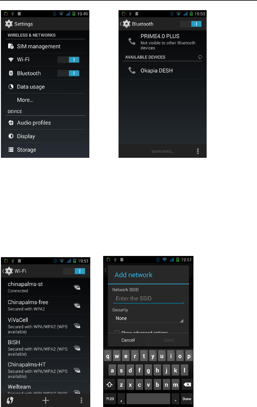1) Settings » Wireless & Networks » Bluetooth and select to power on