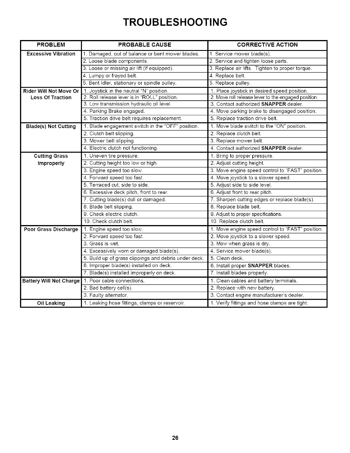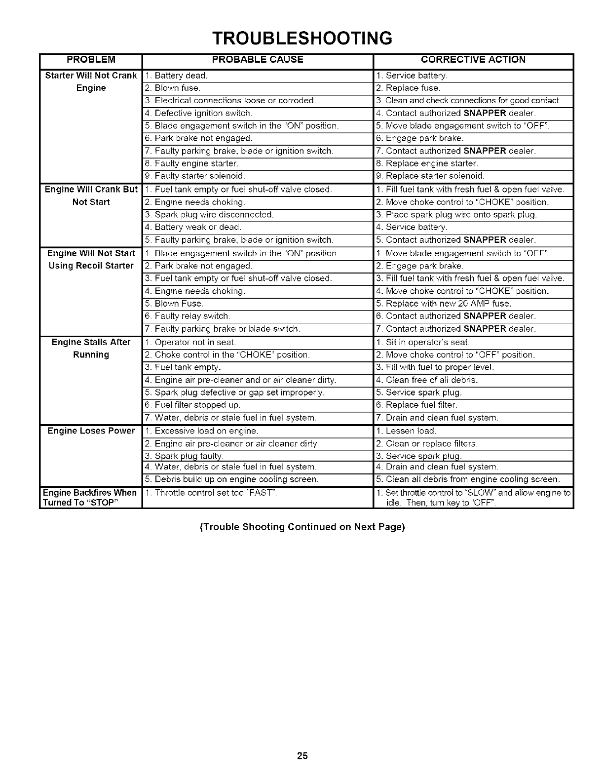 contact your local authorized Snapper dealer or contact Snapper Customer Service at Snapper, McDonough,