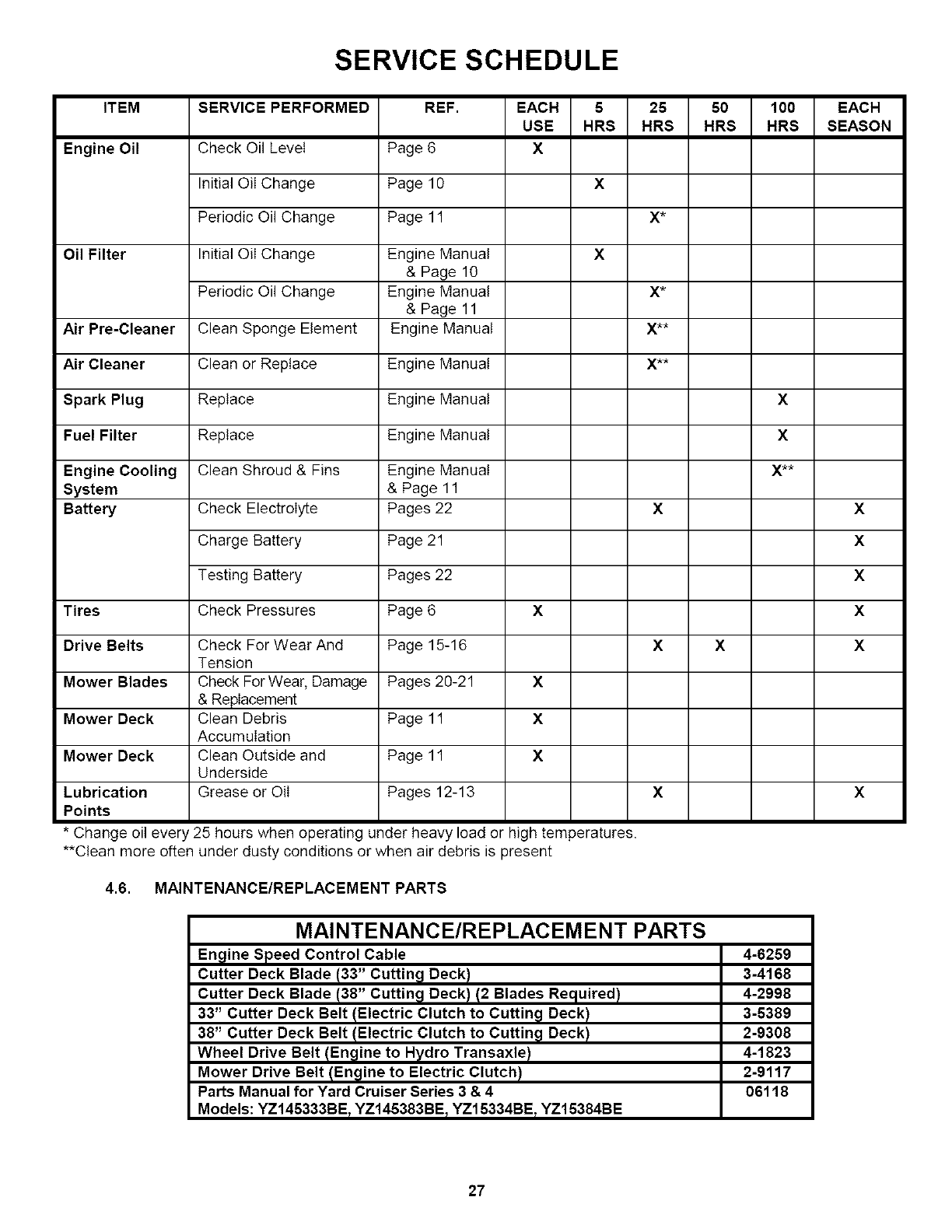 Y - Yard Cruiser 15 - 15.0 HP Engine 33 - 33" Cutting Deck 4- Series Designation B -Briggs Engine E - Electric Start