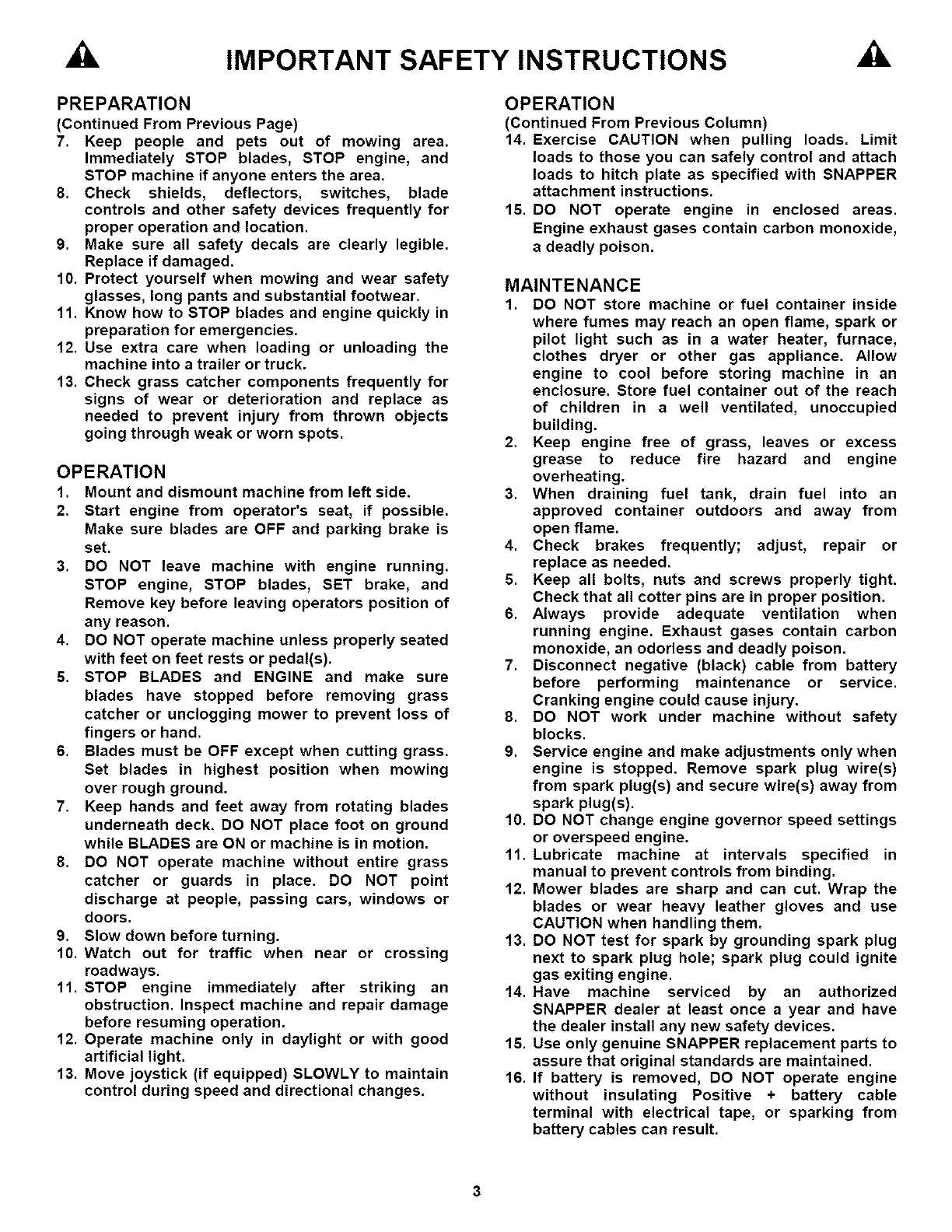 User Manual: SNAPPER SNAPPER Lawn, Riding Mower Rear Engine Manual SNAPPER Lawn, Riding Mower Rear Engine Owner's Manual, SNAPPER Lawn, Riding Mower Rear Engine installation guides