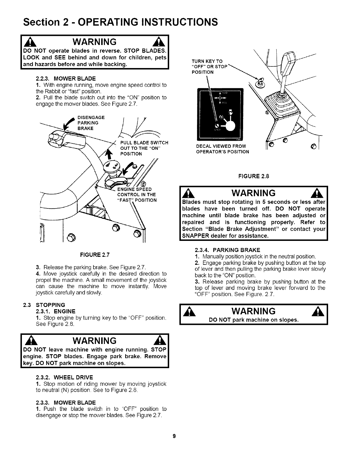 6. DO NOT operate blades in reverse. STOP BLADES.