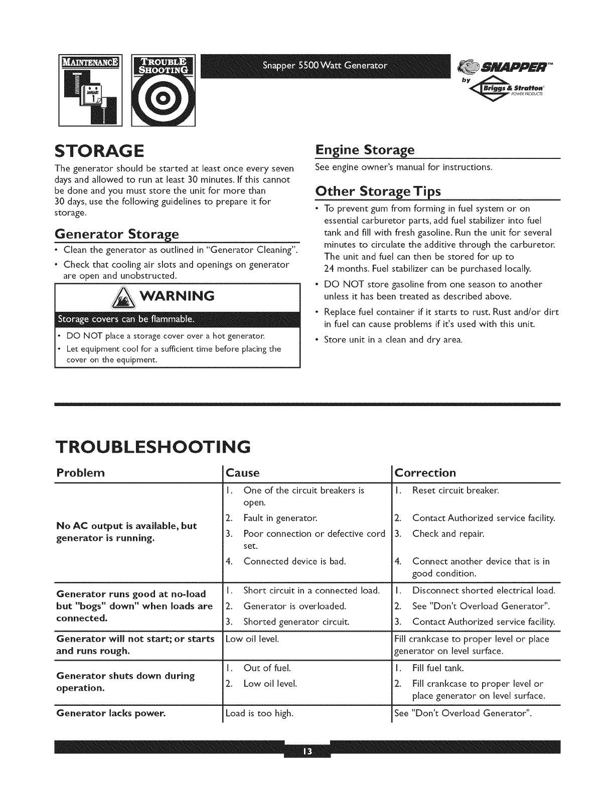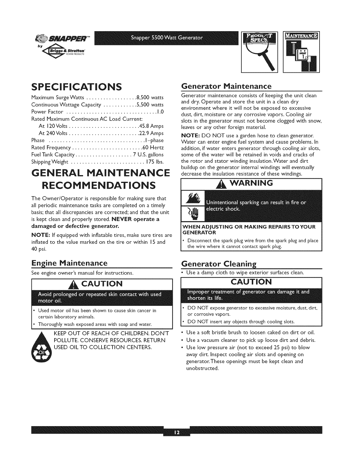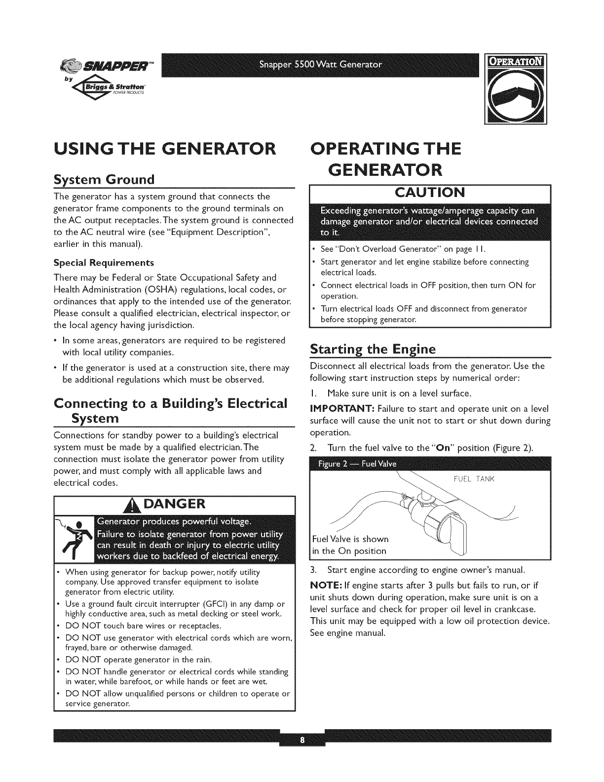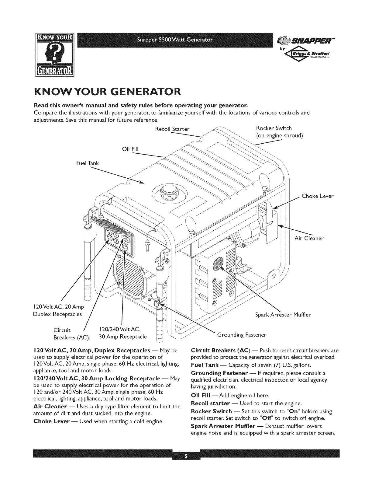 User Manual: SNAPPER SNAPPER Generator Manual SNAPPER Generator Owner's Manual, SNAPPER Generator installation guides